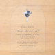 Cette élégante invitation au baptême présente un bouquet d'aquarelle de fleurs bleu et bleu marine poussiéreuses et de feuillage argenté sur une croix en faux feuille d'argent, au-dessus des mots "s'il vous plaît rejoignez-nous pour le baptême de notre fils" en fonte italique gris fusain. Personnalisez-le avec le nom en élégante calligraphie d'écriture bleu marine, avec les détails en gris sans serif police sur votre choix d'un arrière - plan clair ou givré.