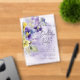 Ce design simple mais élégant d'invitation à l'anniversaire acrylique présente un bouquet de pansies violet, jaune, lavande et d'autres fleurs avec verdure. L'arrière - plan est un arrière - plan d'aquarelle violet sur un papier d'aquarelle blanc texturé. Créé par Simply Farmhouse Press.