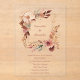 Faites une première impression à couper le souffle avec cette faire-part de mariage acrylique florale boho rousse. Doté d'un arrière - plan transparent et d'une délicate couronne de fleurs neutres et toniques, cette invitation exhale élégance et sophistication moderne. L'agencement doux des pivoines, des roses et des feuillages d'automne lui confère une atmosphère romantique et terreuse, parfaite pour les mariages d'automne, les cérémonies botaniques ou les événements bohème-chic. Personnalisez avec vos noms, date et lieu pour créer un gardien élégant que les invités chériront.
