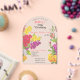 Cette belle invitation au 50ème anniversaire a une forme d'arc très chic et est richement décoré avec des fleurs multicolores tendance. Les fleurs sont le millepertuis, le snapdragon et les fleurs murales de Saint-Jean, avec un design transparent inspiré par les vitraux. Tous les textes sont écrits avec une typographie raffinée sur un arrière - plan en verre dépoli pour une meilleure lisibilité et sont personnalisables. Vous pouvez alors utiliser cette carte pour toute autre occasion ou tout autre anniversaire. Parfait pour un heureux 50e anniversaire florissant !