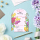 Cette belle invitation au 50ème anniversaire a une forme d'arc très chic et est richement décoré avec des fleurs multicolores tendance. Les fleurs sont le millepertuis, le snapdragon et les fleurs murales de Saint-Jean, avec un design transparent inspiré par les vitraux. Tous les textes sont écrits avec une typographie raffinée sur un arrière - plan rose clair pour une meilleure lisibilité et sont personnalisables. Vous pouvez alors utiliser cette carte pour toute autre occasion ou tout autre anniversaire. Parfait pour un heureux 50e anniversaire florissant !