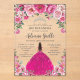 Personalize this pretty floral Quinceañera / Sweet 16 birthday acrylic invitation easily and quickly. Simply click the Edit Using Design Tools button to further edit the text, change font styles and font colors. Featuring a girl dressed in a vibrant fuchsia pink dress, a combination of pretty fuchsia pink and light pink flowers and a silver princess crown. The quince girl and crown are movable, resizable, multipliable and removable. Customize it to suit your occasion. Matching items available in store. (c) Somerset Fine Paperie by The Happy Cat Studio.