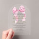 La redacción es totalmente personnalisable para satisfaisant sus necesidades. Aquarelle rose vif moderne design Bow. Il présente un élégant confetti en faux or, charmant arc en aquarelle rose, sur un arrière - plan en acrylique transparent. Utilisez l'outil Personnaliser pour ajouter vos informations. Pour les articles correspondants, s'il vous plaît, visitez ma Collection de Baptême Transparent Espagnol.
