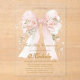 Celebrate a meaningful milestone with our Girl Floral Bow First Holy Communion acrylic invitation, crafted to add a touch of elegance to your sacred event. This beautifully designed invitation features a delicate floral bow motif on clear acrylic, combining sophistication with a personal touch. Made from high-quality, durable acrylic, it offers a modern twist on traditional invitations, ensuring your guests receive a keepsake they will cherish forever.