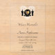 Un faire-part de mariage acrylique clair avec un design de deux toiletteurs, debout de part et d'autre d'un coeur doré (ton or non-feuille). Customisez-le pour votre mariage, aujourd'hui.