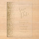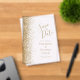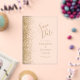 Le bord gauche de cet élégant mariage moderne, à l'exception de la carte de date, est orné d'une bordure de parties scintillant en faux or. Le texte personnalisable combine écriture manuscrite dorée, cuivre et polices italiques sur un arrière - plan clair.