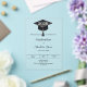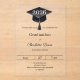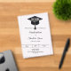 A modern and stylish invitation for a graduation party. Decorated with a black graduation cap. Personalize and add a name, and the details.