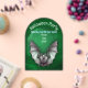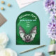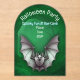 Cette invitation Halloween plexi givré a une chauve-souris blanche éffrayante et verte pâle avec des ailes étirées devant une grotte déplaisante avec des arbres qui est vert brillant. Customisez tout le texte avec les modèles.
