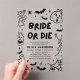 Mariée ou 💋 Meurt 💀 🕸️ Prêt à tuer, les goules ? Cette invitation à la douche nuptiale Halloween en noir et blanc dessinée à la main est parfaite pour la mariée éffrayante qui est tout sauf basique. Avec des squelettes dansants, des fantômes avec cocktails, chauves-souris, jack-o’lanternes, et des toiles d’araignée — c’est déplaisant, mignon et totalement tueur. 🦇 🎃 Parfait pour une bachelorette gothique, une douche nuptiale sorcière, ou une fête Till Death Do Us. Editable, élégant et garanti de tourner les têtes (et peut-être rouler quelques-uns). ✨ Un must pour la mariée qui est en train de mourir pour faire la fête ! ✨