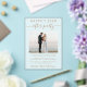 Élégant elopement ou petit faire-part mariage et réception de mariage gelé l'invitation acrylique avec votre photo, "Happily Ever After Party" dans un mélange de typographie or simple et script or chic avec des swashes, vos détails de réception et vos noms dans un script signature.