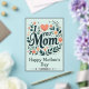 Celebrate the world’s best mom with this stunning "I Love You Mom" Mother's Day card. The front features a lush, garden-inspired wreath of peach and yellow flowers, intertwined with deep teal foliage and a sweet coral heart. This elegant, high-quality card in light green background is the perfect way to tell her how much you love her.