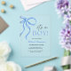 Elegant and Modern Baby Boy Acrylic Shower Invitation in Blue and Gray, adorned with a Stylish Blue Ribbon and personalized Typography. Perfect for a Trendy and Memorable Celebration!