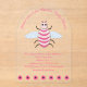 Cette formidable invitation à Baby shower acrylique présente une image graphique d'une petite abeille rose mignonne avec des jambes noires et des yeux beady. elle a un corps flou rose pâle avec des rayures rose vif et de mignonnes antennes roses sur sa tête floue. Ses délicates petites ailes sont ornées d'un motif bleu pâle et marbré. Le design comporte également de jolis tournesols roses. Il y a du texte personnalisé pour que vous puissiez inclure le nom de la Mère à être et tous les détails importants.