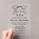 Une simple invitation acrylique de la Fête des mariées Knot Coquette Bow en noir et blanc. Modèles qui vous permettent de modifier facilement la police, la couleur et la taille du texte. Joli doodle arc dessiné à la main et typographie de script.