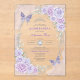 The perfect invitation for your daughter's quinceañera is finally here! This chic and modern quinceañera invitation features elegant watercolor purple roses, a silver glitter tiara and two sweet little butterflies. Click the "customize further" button if you wish to re-arrange and format the style and placement of the text.