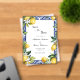 Lemons with blue and white Mediterranean tiles and white florals with greenery wedding Save the date acrylic invitations.