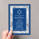 Texture marine en marbre bleu et blanc Star of David Bar Mitzvah invitation acrylique avec Star of David et le nom hébreu de votre fils. Le symbole Star of David peut être retiré dans l'outil de design Zazzle si vous le souhaitez. Les couleurs de cette invitation traditionnelle du Bar Mitzvah sont bleu marine, gris argenté et blanc. Ce sont des couleurs classiques et élégantes, qui sont preppy et toujours élégantes. Bien que cette invitation soit actuellement customisée pour un bar mitzvah, elle pourrait être utilisée pour une variété d'occasions spéciales juives... c'est à vous de décider. Tout ce que vous devez faire est de changer le texte et éventuellement supprimer l'étoile de David. La couleur bleue est également entièrement modifiable sur cette invitation à l'aide de l'outil de conception. Vous pouvez également changer la texture du marbre à n'importe quelle image que vous préférez.