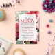 Christmas bridal shower invitation theme "Let's Be Merry Before She Gets Married" featuring elegant hand-painted red and green flowers with soft leafy accents, this design brings a romantic and feminine vibe perfect for Christmas gatherings, brunch showers, garden parties, and special pre-wedding celebrations. Customise the text to fit your event details and make it all yours.