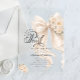 Celebrate the upcoming arrival of your little one with this timeless and luxurious baby shower invitation. Featuring a soft ivory palette, an oversized pearl-adorned bow, delicate florals this design exudes classic elegance and refined charm. The graceful typography and neutral tones make this invitation perfect for a baby girl baby shower. Ideal for formal celebrations, elegant venues, and parents who love a timeless, polished style. Matching items are available.