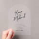 Des textes manuscrits élégants et des accents de brosse sont utilisés pour créer les pièces de cette belle suite mariage moderne. Le mariage acrylique en forme d'arc "Invitation" présenté ici dispose également d'un modèle pour ajouter facilement vos noms et les détails de l'événement. Recherchez ID940 pour voir d'autres pièces et choix de couleurs pour cet ensemble.