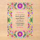 Célébrez votre mariage avec cette magnifique invitation en acrylique transparente avec un design artistique populaire mexicain dynamique. Décorée de motifs floraux colorés et de détails complexes, cette invitation capte magnifiquement la joie et le charme d'un mariage mexicain de la Fiesta. L'acrylique transparent ajoute une touche moderne et luxueuse, ce qui le rend parfait pour les couples mélangeant tradition et élégance contemporaine. Entièrement personnalisable pour refléter votre célébration unique.