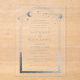 Argent Céleste Sun Moon Astronomy Mariage Les vitamines acryliques présentent soleil argenté, lune et étoiles avec un cadre argenté sur un arrière - plan acrylique opaque. À l'intérieur, vous trouverez vos informations d'invitation de mariage personnalisées. Personnalisez en modifiant le texte dans les zones de texte. Conçu pour vous par Evco Studio www.zazzle.com/store/evcostudio