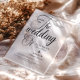 Une mise en page mariage chic et minimaliste avec un gros titre de script audacieux et d'élégants accents serif. Les noms personnalisés et les détails de date sont encadrés en noir et blanc intemporel, parfait pour les couples modernes qui aiment l'esthétique propre. Un énoncé qui allie luxe et simplicité.