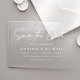 Invitation en acrylique, Taille : 12,7 cm x 17,8 cm, Style : Acrylique transparent, Coins : Rectangle, Impression : Numérique, Épaisseur : Standard (15 mil), Enveloppes : Aucun