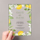 Éblouissez vos invités avec cet élégant enregistrer la date avec de beaux citrons et feuillage feuille rustique avec typographie moderne. Ajoutez simplement les détails de votre événement sur ce modèle facile à utiliser pour en faire une carte unique de sauvegarde de la date.