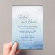 Invitation acrylique mariage moderne avec un design simple avec vos noms dans un script élégant avec vos détails de l'événement sur un arrière - plan d'aquarelle bleue. Cette invitation est idéale pour une plage / mariage côtier en été.