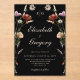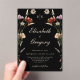 Fleur sauvage Monogram noir Invitations Acrylique Mariage avec de beaux fleurs sauvages aquarelle sur noir moody arrière - plan et écriture de script. Design simple et minimal.