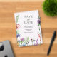 Éblouissez vos invités avec cet élégant enregistrer la date avec de belles fleurs et la typographie moderne. Ajoutez simplement les détails de votre événement sur ce modèle facile à utiliser pour en faire une carte unique de sauvegarde de la date.