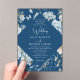 Faire-part de mariage en acrylique Mariage Floral Aquarelle Bleu Poussiéreux Romantique avec des fleurs de céleste bleu poussiéreux et de delphinium avec de la verdure d'eucalyptus accentuée de papillons. Ajoutez votre texte personnalisé dans une écriture de calligraphie moderne élégante. Conçu pour vous par Evco Studio www.zazzle.com/store/evcostudio