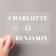 Ces invitations acryliques mariages modernes et audacieuses présentent une typographie blanche propre sur une base acrylique horizontale élégante. Le design contemporain associe le texte gras à une disposition minimaliste, créant ainsi un look sophistiqué et élégant. Parfaites pour les couples qui planifient une fête élégante et unique, ces invitations font une impression durable tout en maintenant un charme intemporel. Idéal pour les mariages formels ou modernes, le design acrylique et horizontal clair offre une présentation distinctive et attrayante.