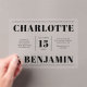 Faites une déclaration avec cette faire-part de mariage horizontale audacieuse, avec une typographie frappante et un design contemporain noir et blanc. L'aménagement épuré et minimaliste est parfait pour les couples modernes qui apprécient l'élégance intemporelle associée à une esthétique élégante et sophistiquée. Que vous soyez l'hôte d'un mariage de ville chic ou d'une soirée formelle, cette invitation donne le ton d'une célébration mémorable. Conçu pour se démarquer, il est à la fois design et polyvalent, séduisant pour ceux qui apprécient le luxe sobre et le design moderne.