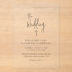 Élégante invitation de mariage en acrylique avec un design simple comportant "le mariage de" dans un script manuscrit moderne et les détails de votre événement dans des polices serif classiques.