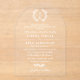 Élégante invitation de mariage traditionnelle en acrylique avec une conception de typographie blanche avec un monogramme de couronne de laurier et de belles polices. Invitation de mariage en typographie acrylique avec un monogramme de verdure et de belles polices avec les parents hôtes. Invitation de mariage en acrylique monogrammée avec une conception de typographie traditionnelle et de la verdure. Invitation de mariage monogrammée blanche imprimée sur acrylique en forme d'arche.