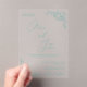 Invitation en acrylique, Taille : 12,7 cm x 17,8 cm, Style : Acrylique transparent, Coins : Rectangle, Impression : Numérique, Épaisseur : Standard (15 mil), Enveloppes : Aucun