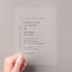 Invitation en acrylique, Taille : 12,7 cm x 17,8 cm, Style : Acrylique transparent, Coins : Rectangle, Impression : Numérique, Épaisseur : Standard (15 mil), Enveloppes : Aucun