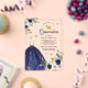 Invitations En Acrylique Marine Blue Floral Robe papillon Or Quinceanera