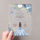 Invitations En Acrylique Mis Quince Dusty Blue & Silver Floral Quinceañera