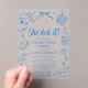 Invitation en acrylique, Taille : 12,7 cm x 17,8 cm, Style : Acrylique transparent, Coins : Arche, Impression : Numérique, Épaisseur : Standard (15 mil), Enveloppes : Aucun