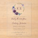 Ce design mariage présente les initiales monogrammes de la mariée et du marié en violet foncé encadré par une couronne d'aquarelle de fleurs violettes sur un cercle de faux feuille d'or. Personnalisez le texte avec les noms du couple dans un élégant script d'écriture manuscrite violet foncé et les détails mariages en gris fusain.