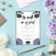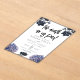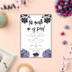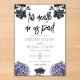 A bold and sophisticated Invitation featuring dramatic dusty blue and grey floral illustrations against a stark black background. The crisp white typography and classic layout set an elegant, moody tone. Perfect for a formal evening or a sophisticated wedding.