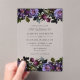 Élégante invitation à mariage floral moody avec une bordure supérieure et inférieure de fleurs violettes et bordeaux, feuillage vert luxuriant et baies sombres avec un arrière - plan acrylique transparent ou gelé. "Le Mariage de" est présenté dans une typographie élégante et moderne. Personnalisez la faire-part de mariage fleurie violette avec vos noms et détails mariages. Le design s'harmonise avec notre collection Moody Gothic Floral mariage.