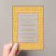 Célébrez votre histoire d'amour avec l'élégance ancienne à travers ce faire-part de mariage acrylique égyptien, inspiré par la riche histoire de l'Egypte ancienne. Conçue sur un arrière - plan de style papyrus avec des accents dorés luxueux et des motifs hiéroglyphes, cette invitation apporte un sentiment de pourcentage et de romance à votre jour de mariage.