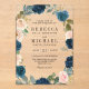 Invitations En Acrylique Navy Blue and Peach Floral Wedding