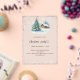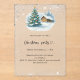 Invitations hivernales pour une fête de Noël. Un arrière - plan dépoli, décoré d'un arbre de Noël décoré d'eau dans la neige, d'une petite maison en bois et d'une parties scintillant étincelante. Personnalisez et ajoutez les détails de votre fête.