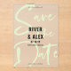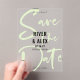 La typographie acrylique sauvegardez la carte de date avec un script moderne en vert nyanza imprimé sur l'ensemble de la carte et vos noms en lettres noires en gras centré sur l'acrylique moderne enregistrer la carte de date sans photo.