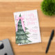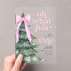 Oh What Fun c'est d'être une invitation de 1er anniversaire avec sapin de Noël et arc rose.